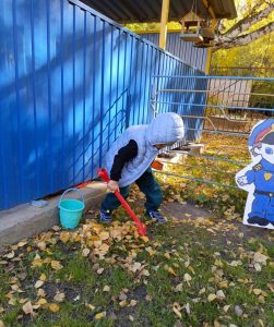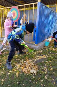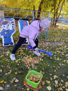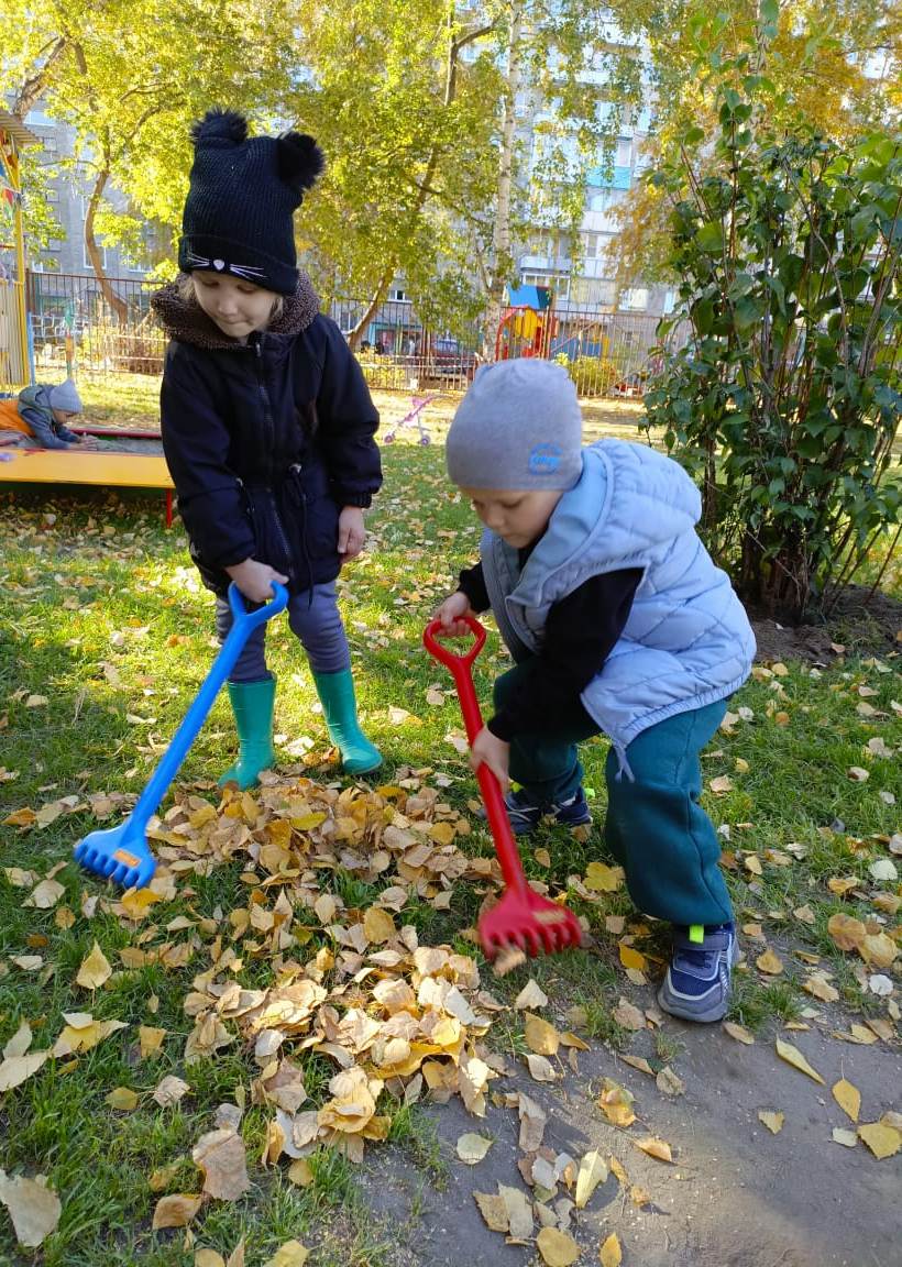 Наступила «золотая» осень! Природа раскрасила разноцветными красками все вокруг. При дуновении ветра летят золотые листочки, а под ногами шелестит пестрый ковер из листьев. С приходом осени пришла пора уборки листьев. В один из таких прекрасных осенних дней ребята старшей группы решили устроить уборку листвы на своем участке. Дети с воодушевлением и энтузиазмом помогали взрослым наводить порядок на игровом участке. Собирали листья в кучи граблями и убирали мусор, ведь благодаря этому, ребята могли почувствовать себя сильными и самостоятельными, как взрослые. В процессе трудовой деятельности дети учились доводить начатое до конца, у них формировалось представление о значимости труда для себя и окружающих, они были очень довольны от результатов выполненной работы.