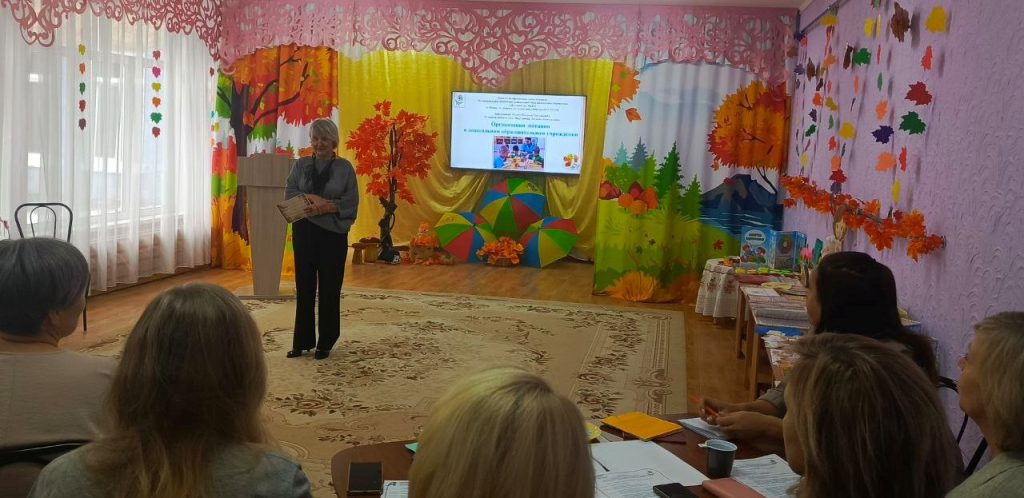 Заведующий Редкус Н.М. ознакомила присутствующих с нормативным ресурсом организации питания воспитанников дошкольных образовательных учреждений. Рассмотрели вопрос обеспечения материальных ресурсов для качественной организации питания воспитанников дошкольных образовательных учреждений: работа с поставщиками, контрольные мероприятия, сервисы госзащиты закупок «Меркурий», «Честный знак».