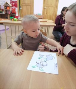 Все игры, задания были объединены одним сюжетом, строились с привлечением родителей к совместной деятельности: ребёнок вместе с мамой рисует, играет, выполняет задания на песке.