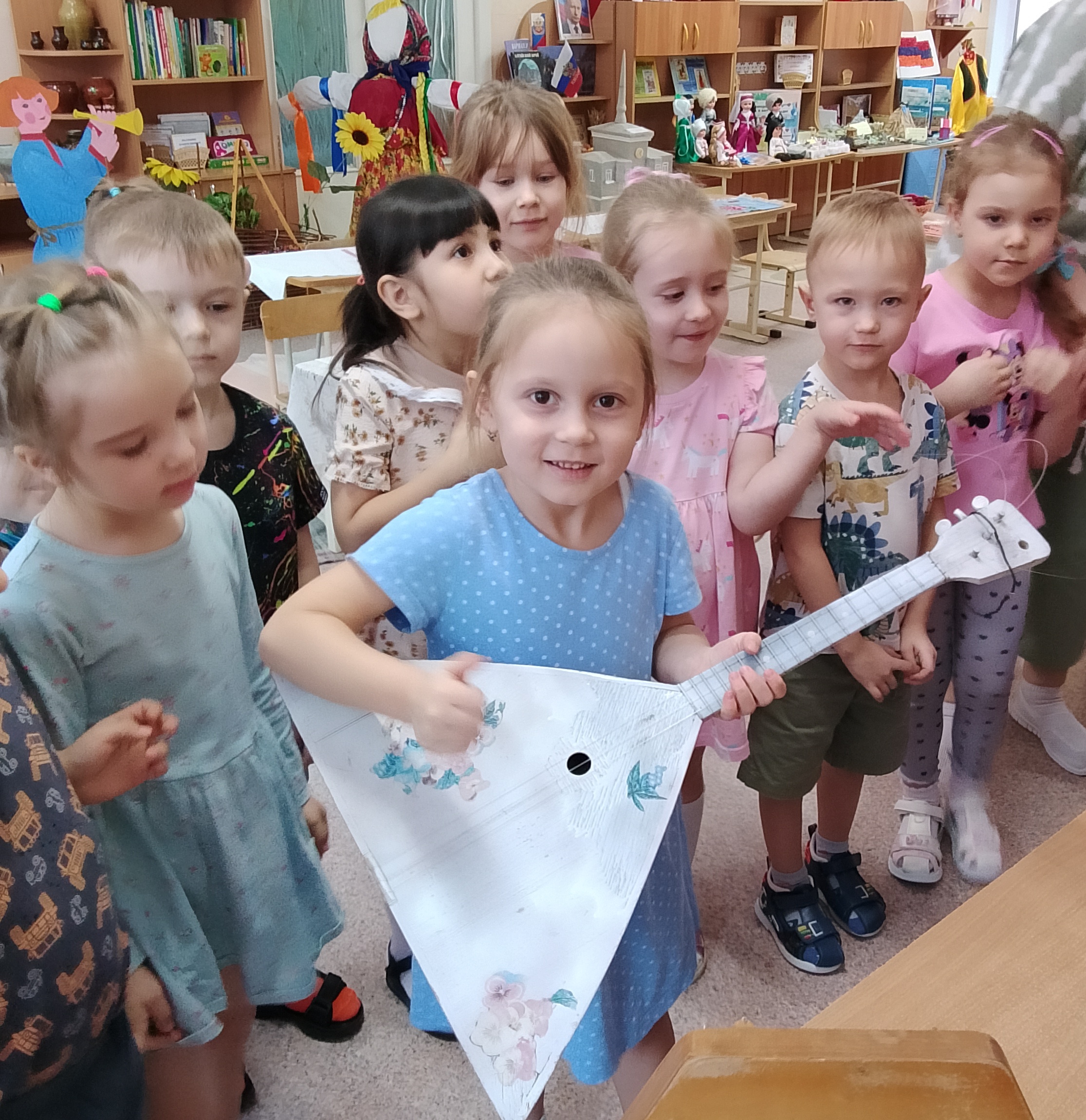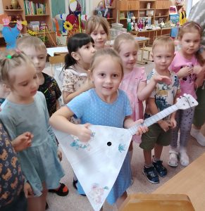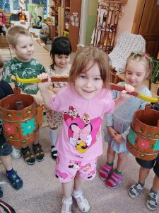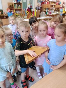 Дети с большим восторгом знакомились и с русскими народными музыкальными инструментами: гуслями, балалайкой, трещотками и гармонью. Узнали, какие мелодии звучали в старинных избах, и даже смогли представить себе, как весело было под эти звуки проводить время.