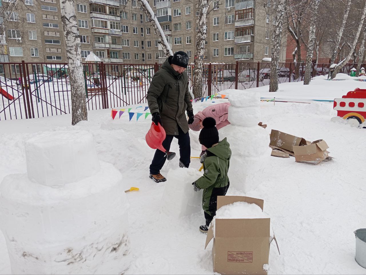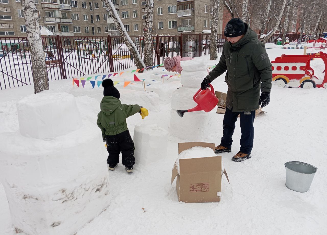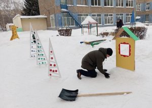 Оформление зимних участков — работа непростая, требующая больших физических затрат. Выражаем слова благодарности родителям, которые нашли время для своих детей и помогли воспитателям в оформлении зимнего участка!