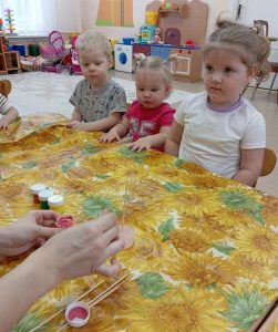 Как сделать кораблик: возьмём кусочек пластилина и прикрепим его ко дну стаканчика. Вставим в пластилин палочку — это будет мачта нашего кораблика. На верхушку палочки прикрепим бумажный флажок. Аккуратно нальём в стаканчик воду.