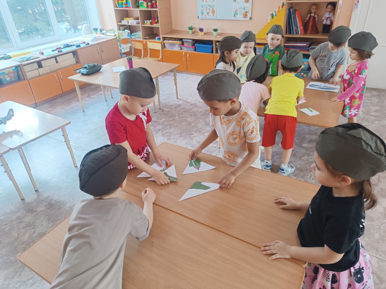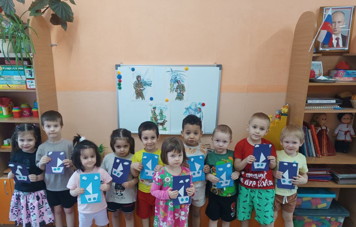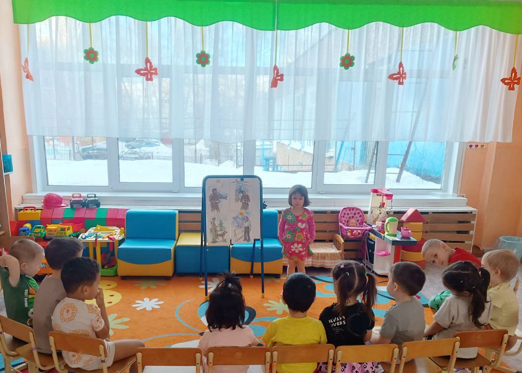 Воспитание любви к Родине начинается с малого – с любви к своей семье, к своему дому. Постепенно, расширяясь, эта любовь к родному переходит в любовь к своей стране, к ее истории, ее прошлому и настоящему. Праздник 23 февраля в детском саду – это хороший повод для воспитания у детей чувства патриотизма, сопричастности к традициям своей Родины. В группе «Лучики» прошло тематическое занятие, посвященное дню защитников Отечества. Говорили о защитниках Родины, военной технике, читали стихотворения, надели пилотки и маршировали как настоящие солдаты. Изготовили поздравительные открытки для любимых пап и дедушек.