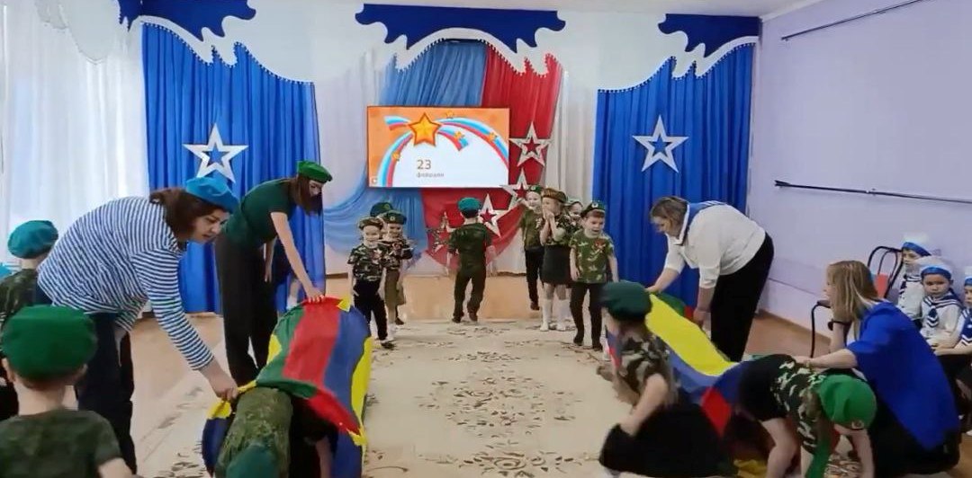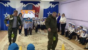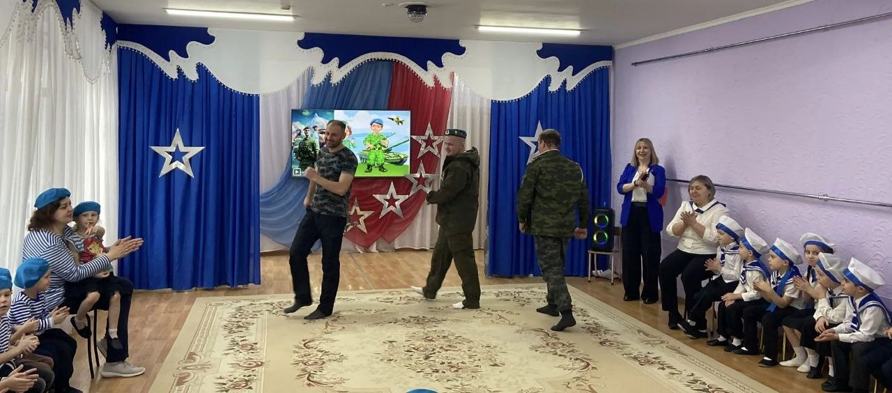 Особыми гостями праздника стала команда «Защитников», состоящая из пап наших воспитанников. Они пришли в военной форме, чтобы поделиться своим бесценным опытом. Анатолий Анатольевич увлекательно рассказал о службе в танковых войсках, а Руслан Александрович поделился интересными фактами о мотострелковой службе. Дети с большим вниманием слушали рассказы и активно задавали вопросы, проявляя искренний интерес к армейской жизни.