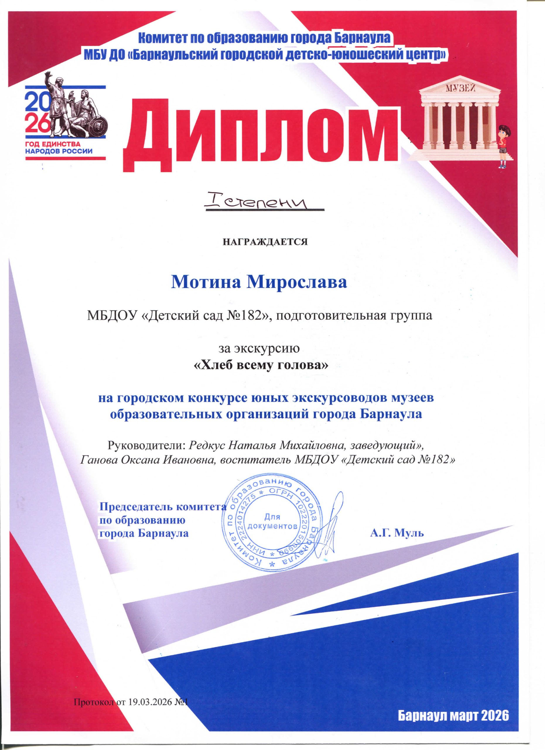 В Барнауле прошли мероприятия по музееведению и краеведению, которые стали настоящим праздником юных хранителей истории и культуры, продемонстрировав их талант и глубокое знание экспонатов своих музеев. Наши воспитанницы, София Гребенщикова и Мирослава Мотина, блестяще проявили себя в городских конкурах. София участвовала в конкурсе презентаций экспонатов школьных музеев «Сокровища школьных музеев», а Мирослава — в состязании юных экскурсоводов музеев образовательных учреждений города. Они продемонстрировали не только глубокие знания, но и настоящий талант в представлении культурного наследия.