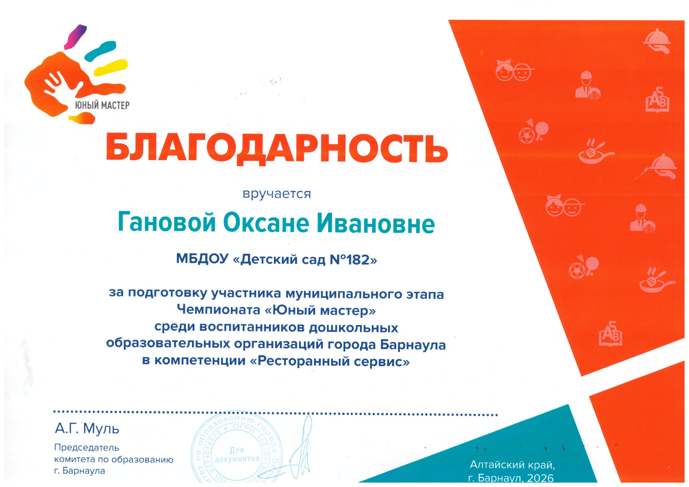 Квалификация: дошкольное образование